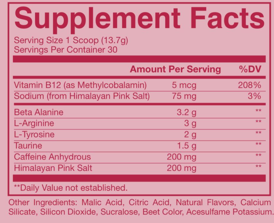 Este completo preentrenamiento es ideal para acompañar tus entrenamientos, sus potentes ingredientes funcionaran de gran manera. Cada servicio presentara una dosis de Arginina, Beta alanina, Cafeína, entre otros. Logrando así maximizar el flujo sanguíneo, combatir la fatiga y una estimulación importante a la hora de entrenar.