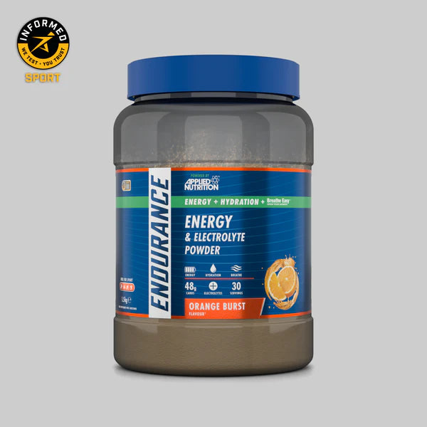 Endurance Breathe, Energy & Electrolyte Powder está diseñado como un suministro de energía rápido y fácilmente digerible, que proporciona 48 g de carbohidratos de rápida absorción y 300 mg de electrolitos por porción con la adición de la exclusiva fórmula Breathe Easy™ de Applied Nutrition, popular entre los usuarios que desean aumentar el oxígeno. ingesta durante el ejercicio y en climas cálidos, velódromos.